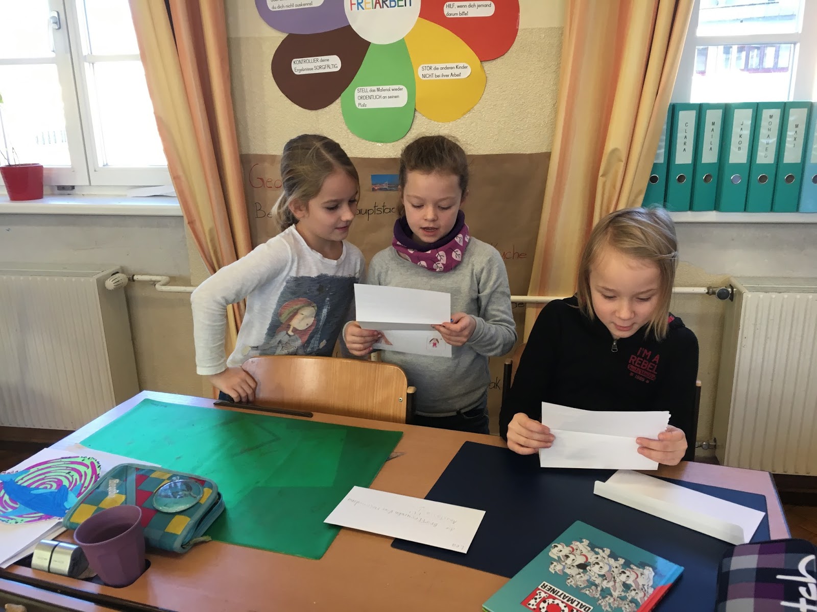 Da die Freude und Neugierde so groß war, lasen wir uns anschließend die Briefe vor. Ein Gespräch über das Briefgeheimnis folgte, welches wir natürlich ab sofort einhalten werden. 😉